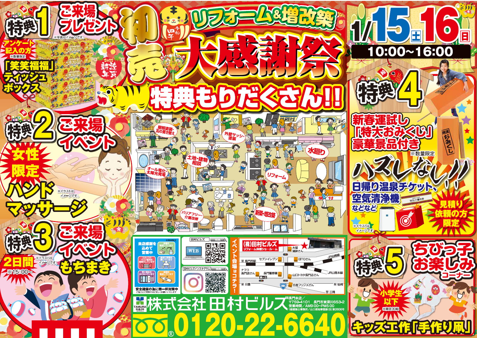 田村ビルズ長門本店にて【リフォーム夏祭り】を開催いたします!夏祭りだけの特典やイベントをご用意して、皆さまのお越しをお待ちしております!■開催日時8月20日(土)・8月21日(日)10:00~16:00※感染症対策を実施して開催いたします。 ご協力とご理解のほど何卒よろしくお願いいたします。