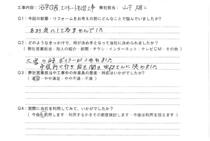 大雪の時、ボイラーが壊れました。