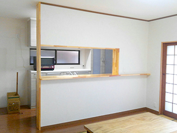 | 施工が完了しました。カウンター型の素敵なキッチンになりました。 | 見た目以上に収納スペースがあります。これでキッチンが物で溢れかえることはないでしょう。 |