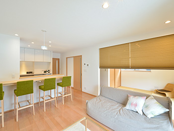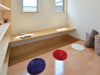 | キッチンはカウンター式ですので料理をしながらダイニングの家族と楽しく会話できますね。 | お子様用の机も取り付けました。掘りごたつで大人の方もゆったり過ごせます。 |